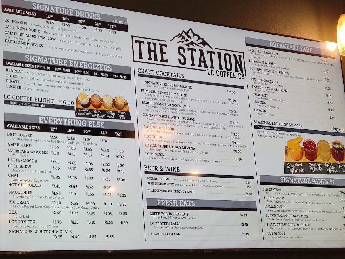 The menu at The Station Lc Coffee Co feels curated for people who want dependable comfort with a few fun surprises, balancing café classics with sweet treats and satisfying bites. On the drinks side, the lineup covers everyday essentials like Coffee while also leaning into more indulgent options such as the White Pumpkin Latte and the Caramel Hazelnut Cold Brew, both of which read as signature-style picks for anyone craving something richer than a standard cup. If you’re not in the mood for caffeine, choices like the Raspberry Smoothie and the fizzy Italian Soda keep things refreshing, while dessert-in-a-glass options like the Birthday Cake Martini add a playful, celebratory twist. Food-wise, there’s a clear focus on cozy, grab-and-go satisfaction: Tomato Soup is a classic on its own, and it becomes a full comfort meal when paired as Soup and a Grilled Cheese Sandwich. For breakfast or something more filling, the Breakfast Burrito and Oatmeal offer hearty options that fit the café setting. The pastry selection rounds everything out with inviting staples and fruit-forward bakes-Cinnamon Roll, Pain Au Chocolat, Apple Strudel, and Raspberry Muffin-giving plenty of reasons to linger or take something to-go. To finish on a standout note, Affogato ties the menu together perfectly, landing right between coffee and dessert and reinforcing the shop’s strength in both.